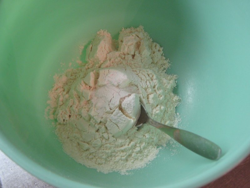 Sekoita keskenään jauhot ja leivinjauhe.