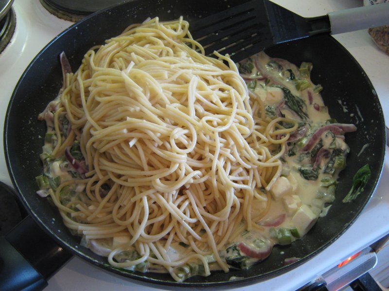 n. 200 g spagettia tai nauhapastaa (tagliatelle)